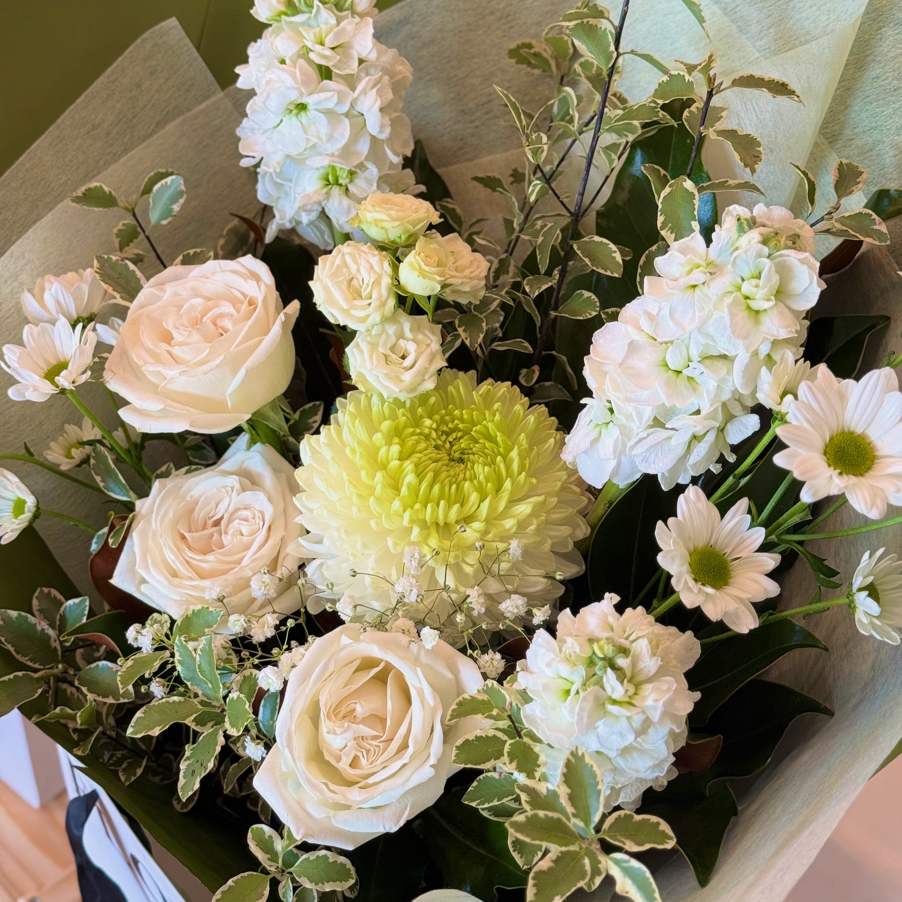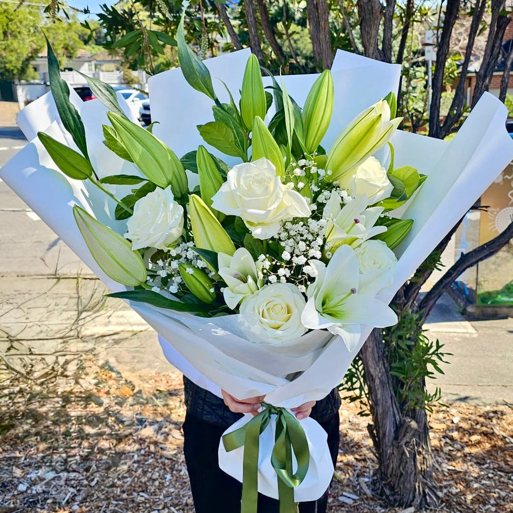 Heart of Snow Standard BouquetSoft white roses symbolising peace, grace, and sincerity. A timeless choice for anniversaries, sympathy, or to brighten someone's day with pure elegance.ย Please note: Flowers may vary slightly depending on seasonal availability.