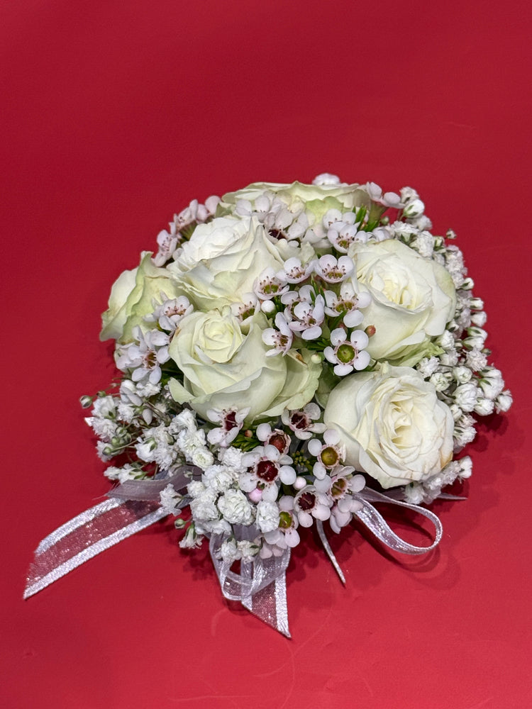 Corsage Pearl Wrist Bracelet Petite Red White Fresh Flowers